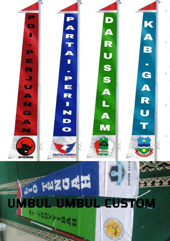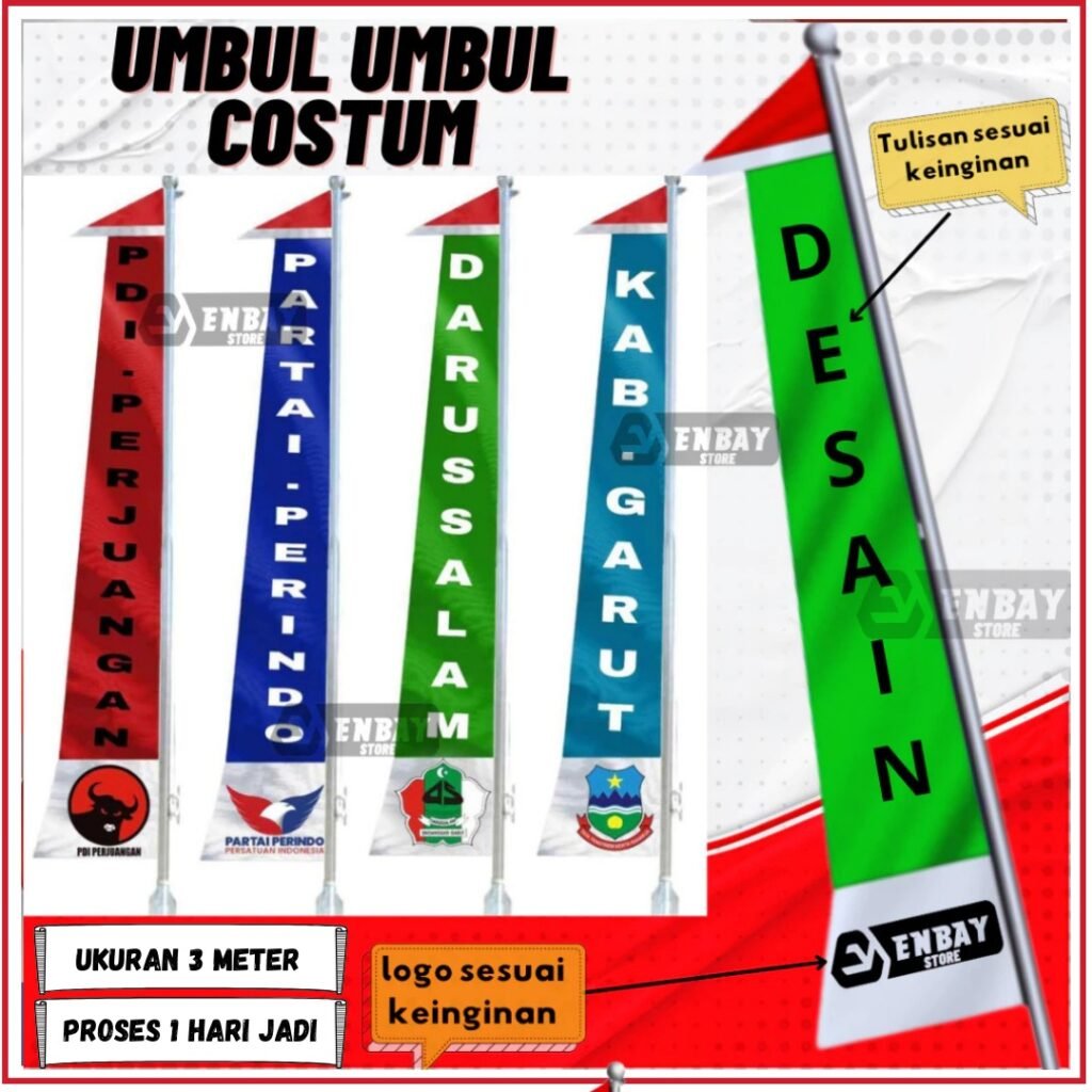 Cetak bendera dengan logo organisasi, partai, komunitas, atau perusahaan Anda. Proses cepat, hasil maksimal, bisa order satuan atau grosir!